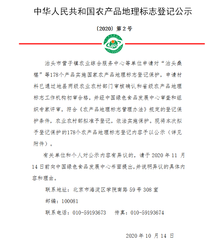 農(nóng)產(chǎn)品地理標(biāo)志登記信息