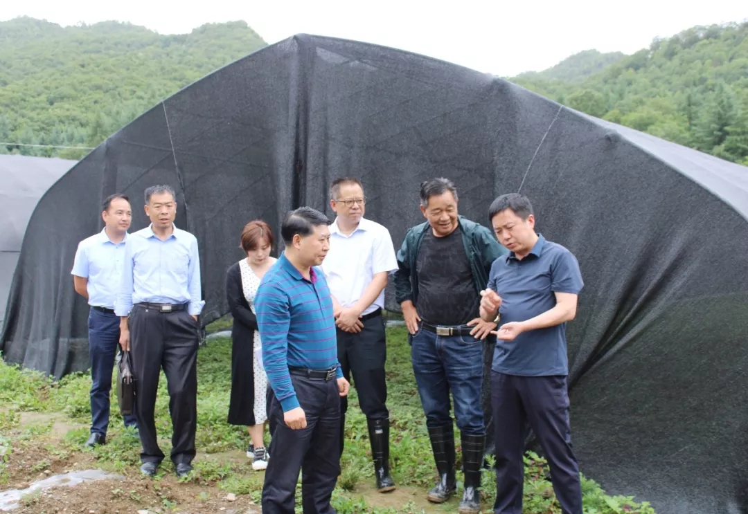 2019年6月29日上午神農(nóng)架林區(qū)黨委副書記、政府區(qū)長(zhǎng)劉啟俊,林業(yè)管理局局長(zhǎng)王興林,林區(qū)政府副區(qū)長(zhǎng)沈紹平,藥養(yǎng)辦總工程師冉超,農(nóng)業(yè)農(nóng)村局局長(zhǎng)王均學(xué),紅花朵林場(chǎng)書記石健康等領(lǐng)導(dǎo)現(xiàn)場(chǎng)調(diào)研神農(nóng)架道地藥材產(chǎn)業(yè)發(fā)展有限公司(簡(jiǎn)稱神藥公司)大黃龍堰生態(tài)示范園。神農(nóng)架聚能藥業(yè)、神農(nóng)架百草園、神農(nóng)架億家鑫等企業(yè)參觀神藥公司大黃龍堰生態(tài)示范園。