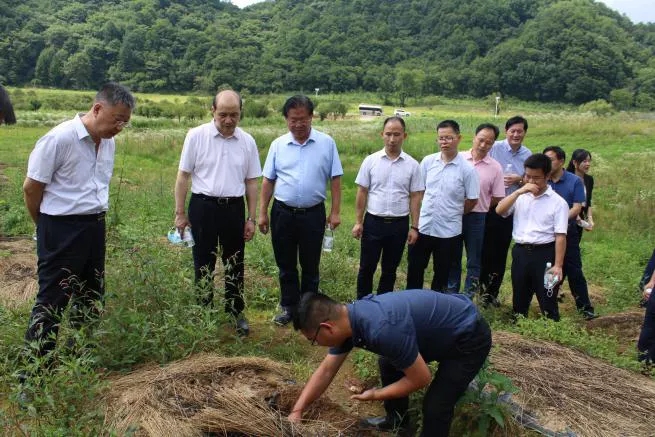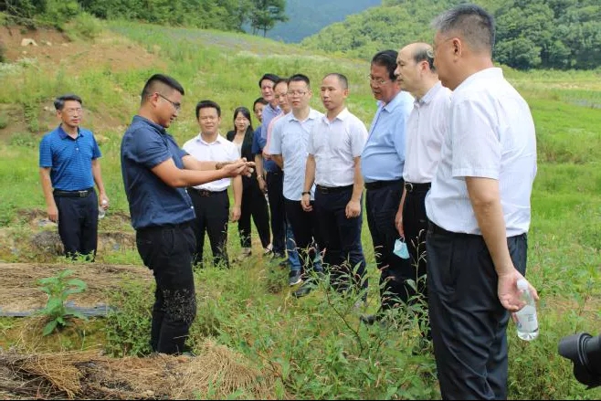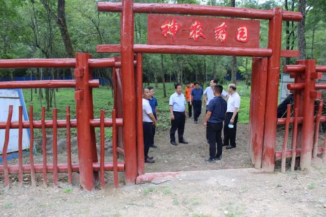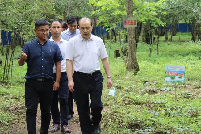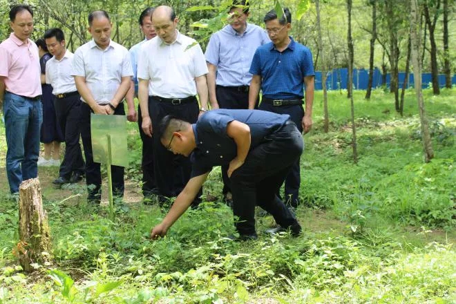 ▲省領(lǐng)導一行參觀神藥林下種植中藥材示范園“神農(nóng)藥園”,了解林下種植優(yōu)勢、后期林下種植規(guī)劃。神藥公司技術(shù)經(jīng)理張俊介紹神藥公司致力打造黃龍堰生態(tài)示范園,并建設(shè)林下種植示范園“神農(nóng)藥園”,進行試驗性種苗區(qū)種植及瀕危名貴野生品種的訓育。