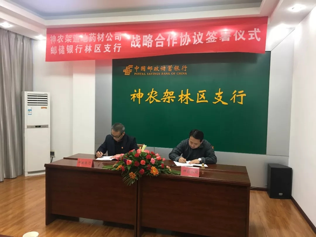 神農(nóng)架道地藥材產(chǎn)業(yè)發(fā)展有限公司與中國郵政儲蓄銀行神農(nóng)林區(qū)支行建立長期戰(zhàn)略合作關(guān)系。